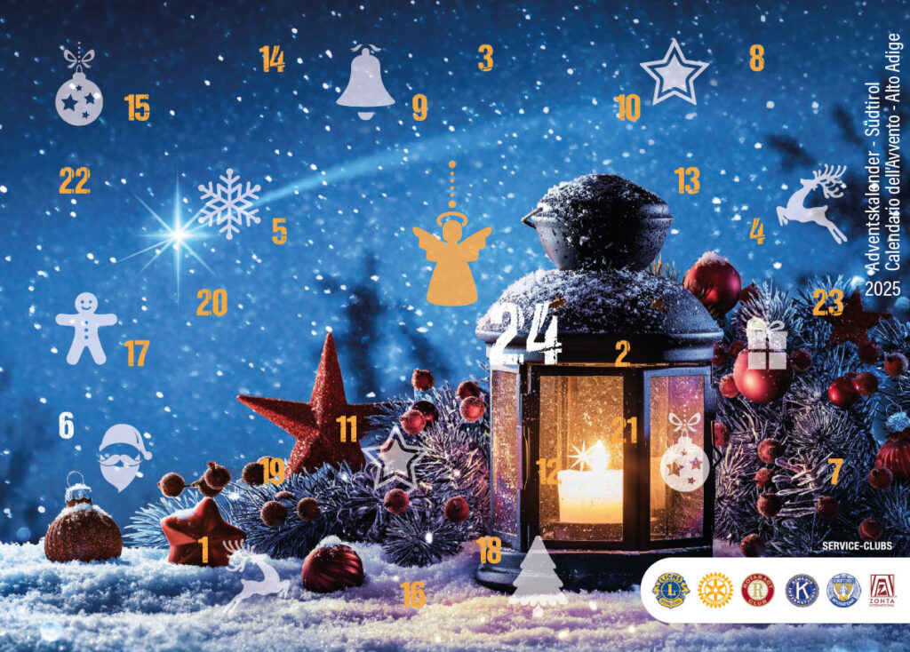 Auch in diesem Jahr beteiligt sich der Rotary Club Meran am Südtiroler Adventskalender – einer regionalen Weihnachtsaktion, die soziale Projekte unterstützt und gleichzeitig tägliche Gewinne möglich macht. Hinter jedem Türchen steckt die Chance auf attraktive Preise, doch der eigentliche Wert liegt im Gemeinwohl: Der Erlös fließt an Organisationen und Initiativen, die Menschen in schwierigen Lebenssituationen helfen.